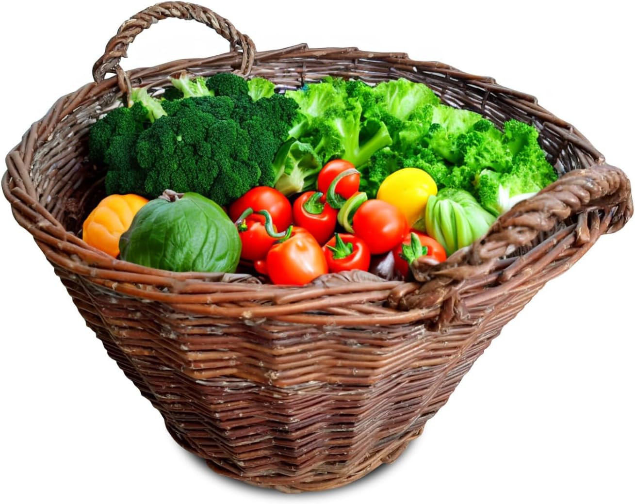 Funkcjonalny, oryginalny, pojemny i ozdobny kosz ręcznie wypleciony z grubej, solidnej wikliny. Posiada mocne uszy, które świetnie sprawdzają się podczas przenoszenia drewna, warzyw czy liści. Kosz jest przydatny nie tylko w ogrodzie, ale znakomicie sprawdza się również w domu, czy piwnicy do przechowywania np. owoców.